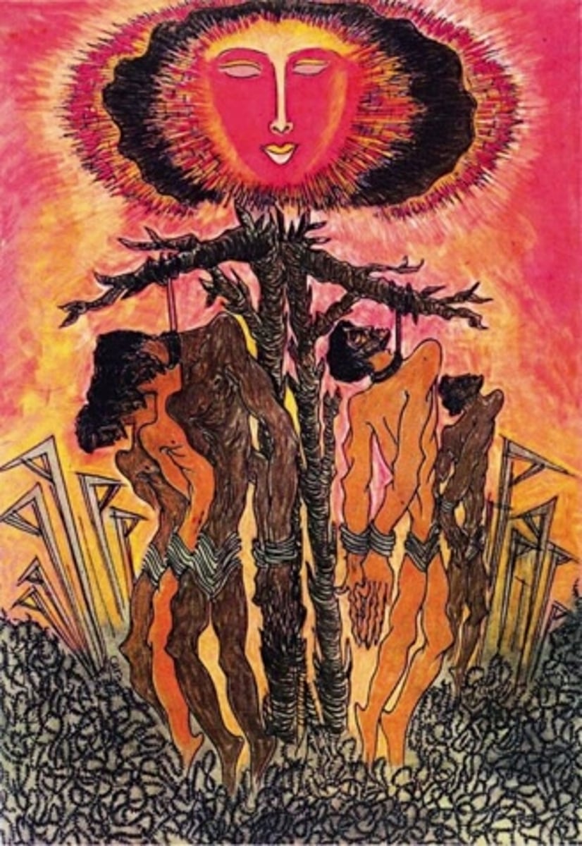 gnarled tree—symbols of suffering, oppression, and martyrdom. Above them, a