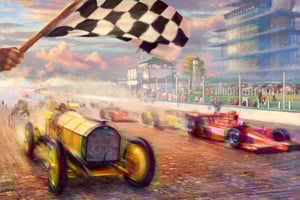 Step foot into a crisp autumn evening at Apple Hill. The light fall breeze, coupled with the bountiful harvest of pumpkins and colorful mums lining the pathway inspire feelings of serenity and comfort, only found on a tranquil Autumn evening. As the sun sets, brilliant colors of gold, scarlet, lavender, and blue paint the sky and reflect upon the transforming landscape and foliage. Autumn memories of picking apples from the trees and walking through the pumpkin patch looking for just the right pumpkin are captured in Autumn at Apple Hill. In the distance you can see the quaint village where you’ll find the bounty of Autumn: candied apples, homemade applesauce, apple butter, apple fritters and turnovers, and fresh pumpkin and apple pie. Autumn at Apple Hill is only the third Kinkade painting to have pumpkins painted into the scene. The last painting to honor “Apple Hill” was done in 1992 by Thomas Kinkade.