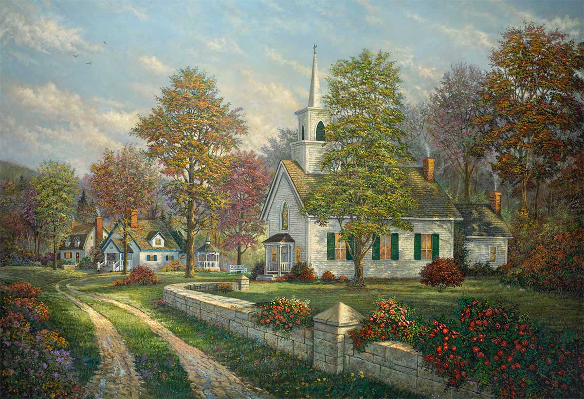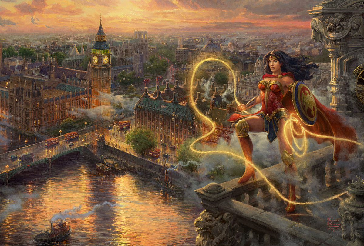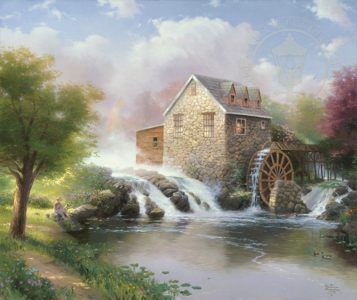 In Disney’s Frozen, the kingdom of Arendelle had sadly lost their regents when the sailing vessel they were on sank in a ferocious storm. The country’s time of mourning has passed, and the kingdom of Arendelle has invited everyone, near and far, to join them in celebrating the coronation of the eldest daughter, Princess Elsa. A grand one-day fête has been planned, and the kingdom has been festooned with colorful flowers and flags. Thomas Kinkade Studios® is pleased to present Disney Frozen Celebration in Arendelle. Disney Frozen Celebration in Arendelle is the second time Thomas Kinkade Studios® has collaborated with Disney to create art featuring moments from this classic film. The first painting was Disney Frozen.