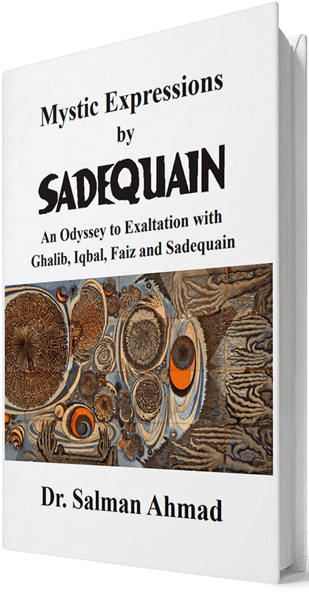 This book is the first of its kind, which presents a collection of Sadequain’s illustrations and interpretations based on the select poetry of Ghalib, Iqbal and Faiz. The extraordinary collection of 53 illustrative paintings and two large murals by Sadequain included in this book represents a confluence of the most extraordinary talent of the art and Urdu literature. The verses that Sadequain selected to illustrate reflect various states of self-realization and consciousness. As archetypal expressions of mystic vision, these paintings transcend our latent susceptibilities. They hold a beacon to the path of enlightenment, guide through the gateway of spiritual freedom, and provide a conduit to transpersonal truth. In these paintings, Sadequain seeks to share his observations, experiences, and interpretations of the truth, and his relationship to the world around him and beyond through the poetry of his choice. Sadequain is known to have painted day and night all through his life. It is estimated he painted over 15,000 pieces. He recklessly gave much of his works away, great numbers were taken away, and the remaining were stolen. He did not keep an inventory and traces of most of the works do not exist. The SADEQUAIN Foundation has been engaged in exhaustive research to locate Sadequain’s murals, paintings, calligraphies and drawings, and to this day continues to do so. This book presents the illustrative works based on the poetry of Ghalib, Iqbal, and Faiz that have so far been discovered by the Foundation.